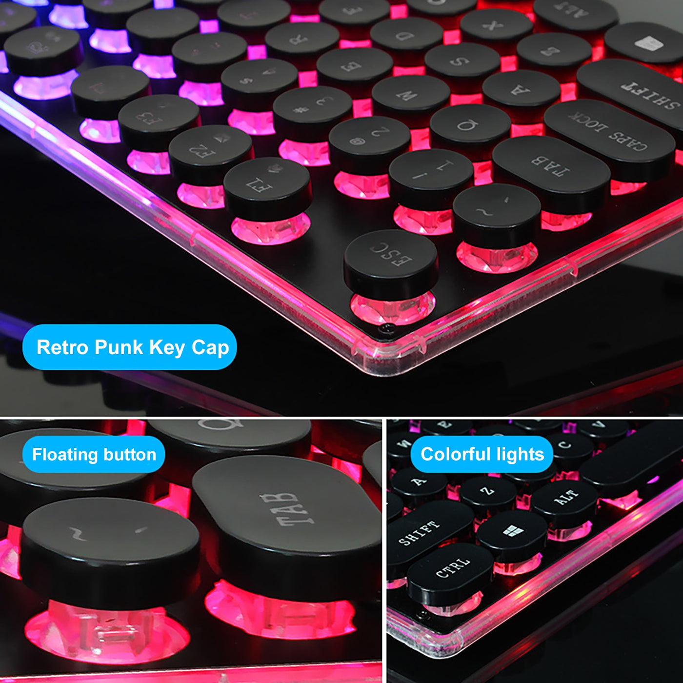 Zero punk rainbow luminous wired USB keyboard and mouse set game LOL mobile game computer accessories